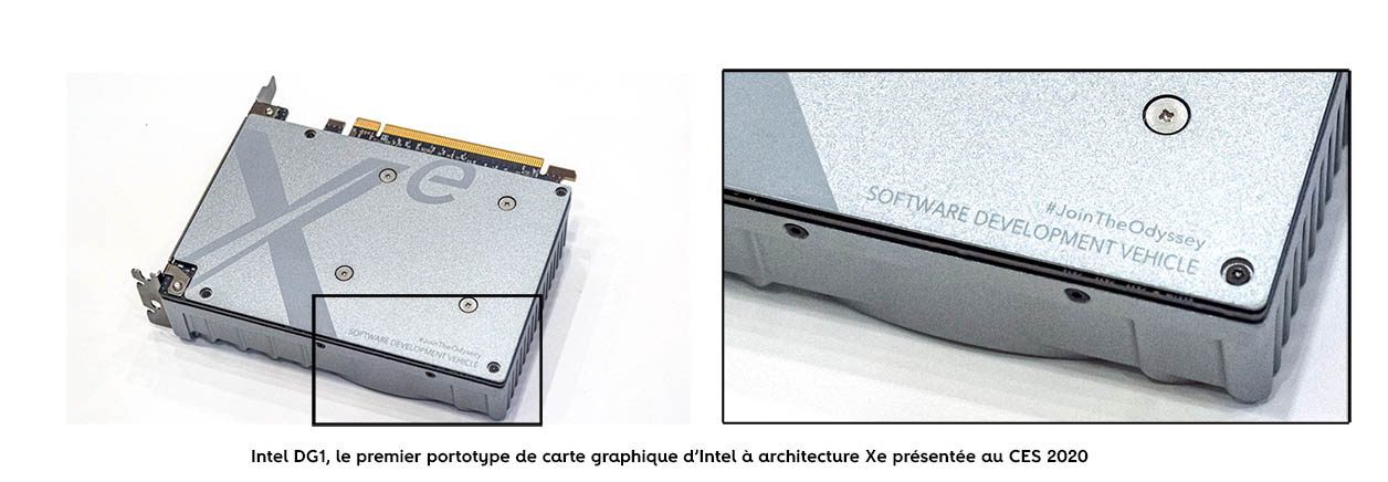 Faisant parti d’un lot de goodies donnés à la fin de la conférence comme c’est souvent le cas au CES – tous griffés « Odyssey », du nom marketing de « l’aventure graphique » d’Intel –, cette carte n’avait jamais fait l’objet d’autre communication de la part d’Intel. Tout juste savait-on qu’il fallait la garder, au cas où…