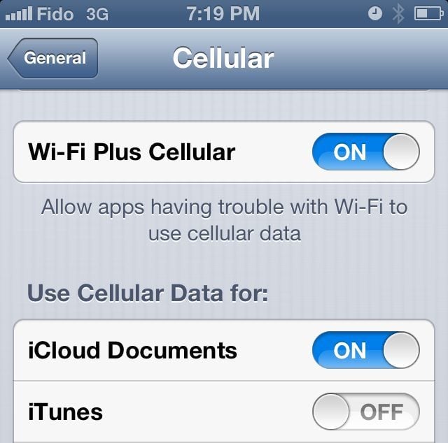 La bêta d’iOS 6 ajoute une nouvelle option dans le menu Réglages : un interrupteur qui autorise les applications qui ont des soucis avec la connexion Wi-Fi de passer automatiquement par la connexion 3G.