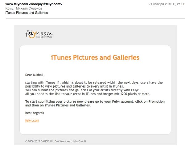 La firme de Cupertino, via la plate-forme affiliée Feiyr, en l’occurrence, demande à recevoir des visuels haute définition et des photos pour iTunes, pour une sortie « dans les tout prochains jours ».