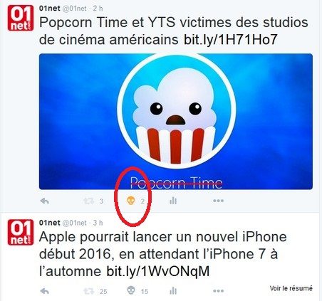 Il est aussi possible de remplacer le cœur par n’importe quel autre emoji : un demi de bière, une tête de mort ou une banane… Pour cela, il faut commencer par télécharger l’extension Stylish, disponible pour Chrome ou Firefox. On récupère ensuite sur Userstyles.org, site compagnon de l’extension, un « style » créé par un internaute répondant au pseudo de Simodk qui remplace le cœur par une étoile. Une fois ce bout de code dans Stylish, il est possible de le modifier en y insérant n’importe quel emoji. Nous avons testé la méthode avec un crâne et cela fonctionne très bien.