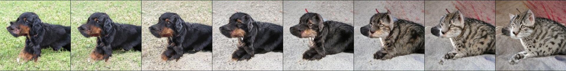 Bien entendu, la route est encore longue pour obtenir des images d’une définition importante et surtout aboutie à chaque fois. ImageNet a par exemple été entraîné à passer d’une image à une autre en générant des images de transition. On obtient alors des résultats très étranges comme ici lors de la transition entre un chien et un chat.