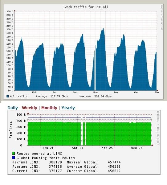 Un rapide coup d’œil sur les statistiques des points de peering européens confirme en partie cette affirmation. Sur AMSIX (Amsterdam) et DE-CIX (Francfort), on ne voit rien de spectaculaire. Sur France-IX (Paris) et LINX (Londres), on observe quelques baisses brutales de trafic, mais limitées à quelques heures, le 23 mars sur LINX et le 25 mars sur France-IX.