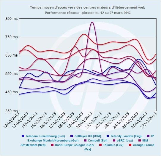 En revanche, IP-label a constaté une augmentation du temps d’accès d’environ 10 % auprès d’un certain nombre de gros hébergeurs européens. Cette dégradation démarre le 18 mars et se termine le 26, ce qui correspondrait donc bien à la fameuse méga-attaque.