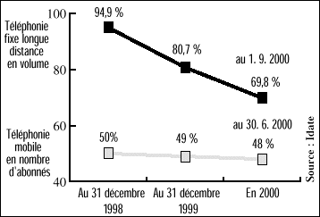 La part de marché de France Télécom sur les segments ouverts à la concurrence