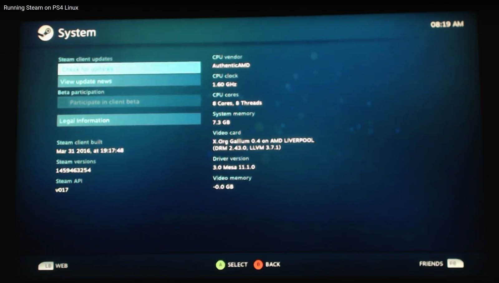 Outre la présence d’un vieux firmware (1.76) dans la console – un jailbreak pour une version plus récente de l’OS de la console (3.5) est en cours de mise au point, il faut réussir à installer une version de Linux (il existe un hack pour ça depuis la fin d’année dernière), patcher les pilotes Linux pour Radeon à la main, etc. On est encore loin de la procédure bien propre et automatisée pour le commun des mortels, mais le résultat est là : selon le hacker OsirisX cité par Engadget « la plupart des jeux s’exécutent bien dans des niveaux de détails faibles ». On parle en l’occurrence des titres disponibles sur la version pour Linux de Steam, la plate-forme de Valve, qui règne en maître sur le jeu dématérialisée sur PC.