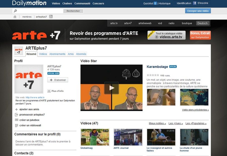 Pour donner une plus grande visibilité à son excellent service de télévision de rattrapage, Arte + 7, la chaîne franco-allemande a choisi de le rendre disponible sur les deux plates-formes de partage de vidéos les plus populaires d’Internet.