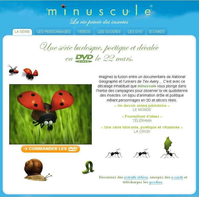 Avec Minuscule, la série d’animation 3D du studio Futurikon, la prairie est le théâtre de mille et une facéties pour bêtes à bon Dieu, araignées goulues et sauterelles tres sautantes. Sur le mini-site dédié à cette série, on peut retrouver avec