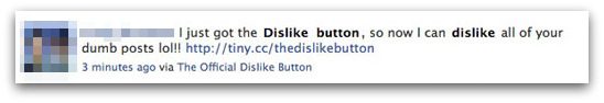Les concepteurs de cette application malveillante ont développé un mode de propagation très incitatif. Dès qu’un internaute télécharge le malicieux programme, un message est immédiatement envoyé sur les murs de l’ensemble de ses contacts : « Je viens juste de mettre la main sur le bouton officiel “je n’aime pas”, je peux maintenant ne pas aimer toutes vos fichues publications lol ! ». Le texte, qui apparaît sous la forme d’une mise à jour de statuts, peut laisser croire que l’utilisateur lui-même en est à l’origine. Une tiny url suit. Elle propose un accès direct à la page de téléchargement. « Ne cliquez pas sur le lien ! », conseille sur son blog Graham Cluley, l’un des spécialistes de la sécurité chez Sophos.