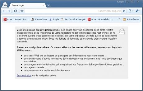 Tant Internet Explorer 8 que Chrome proposent donc un mode de navigation ‘ discret ‘. Dans ce mode, le navigateur n’enregistre pas l’historique des sites Web visités et ne se laisse pas poser d’identifiants par les