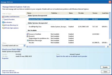 Le succès de Firefox est lié en grande partie à sa capacité à intégrer des extensions, de petits programmes qui améliorent le navigateur en changeant son comportement.Internet Explorer faisait, à ce titre, office de parent pauvre. Désormais, qu’il s’agisse des barres d’outils supplémentaires, des extensions, des moteurs de recherche, des Accelerators, etc., tout est clairement identifiable,