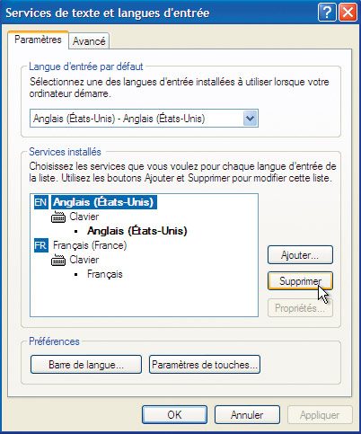 Langues, cliquez sur Détails. Avec Vista, activez l’onglet Claviers et langues et cliquez sur loption Modifier les claviers…