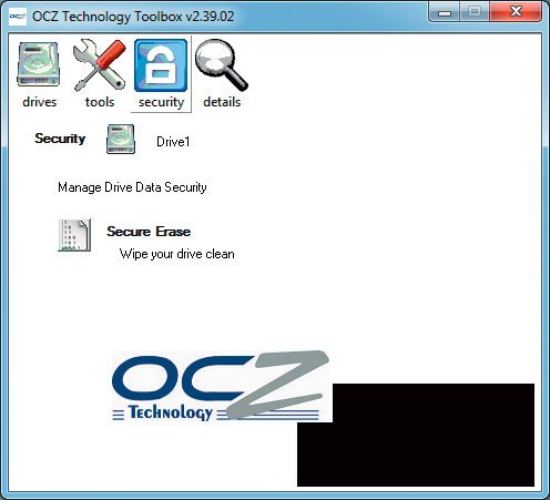 Allez sur le site Web d’OCZ Technology et téléchargez le programme Toolbox avec Windows. Non seulement il permet d’obtenir des informations sur le disque, mais également de télécharger un nouveau firmware et de le nettoyer complètement. Cet effacement garantit la suppression totale des données et peut aussi donner un coup de jeune à votre disque en supprimant toutes ses cellules.