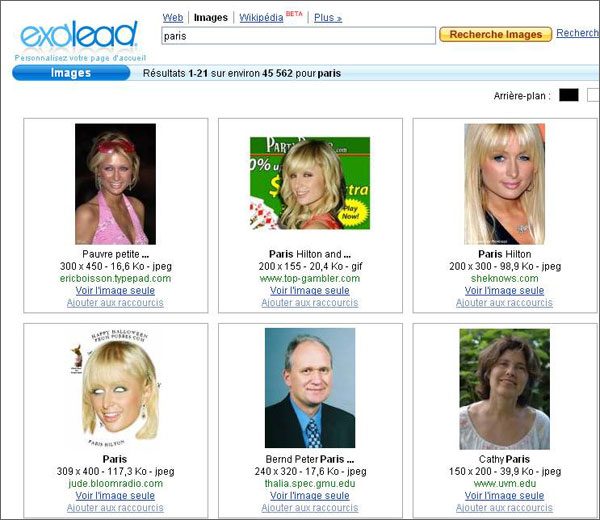 visage au mot ‘ Paris ‘. Et apparaissent donc principalement des photographies de la médiatique Paris Hilton, héritière des hôtels Hilton.