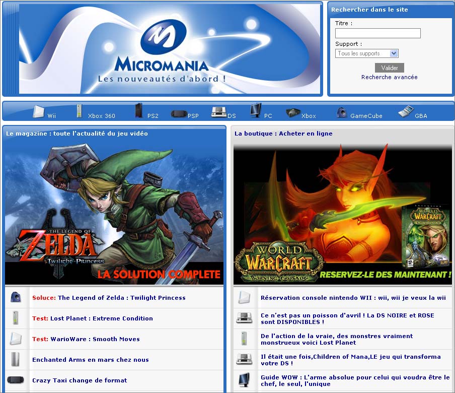 Fort de son expérience dans les jeux (250 boutiques en France), la société Micromania ouvre une cyberboutique. Rien que des jeux, mais tous les jeux pour PC, PS2, Xbox 360, PSP, Nintendo DS et GameBoy Advance, du neuf