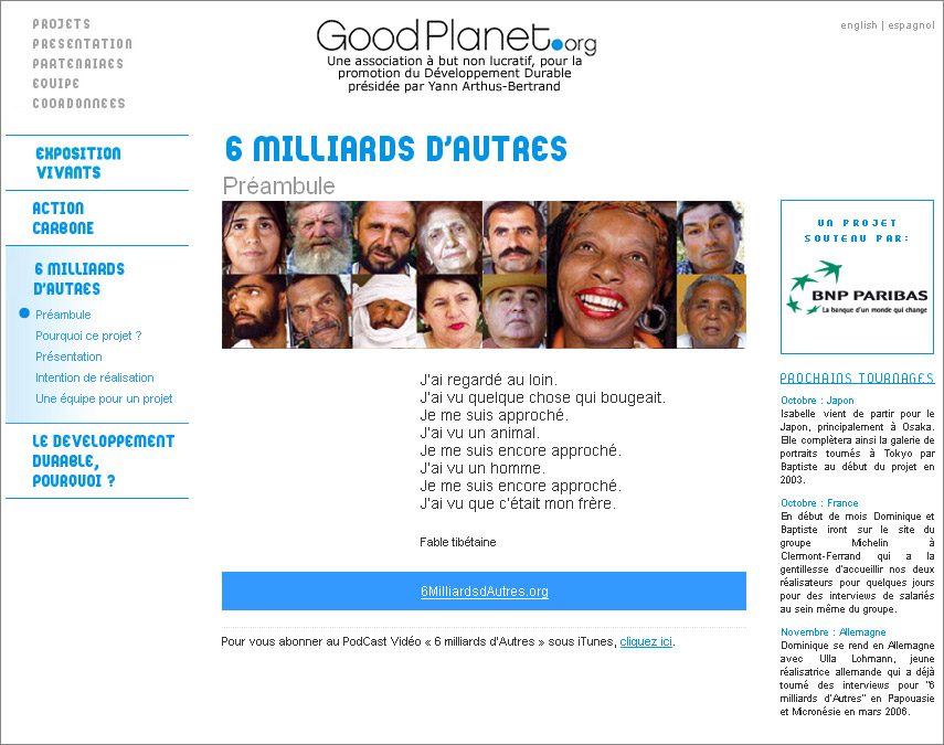 sur le beau site de son association, Goodplanet. Dans la section Action Carbone, on peut par exemple y calculer la (terrifiante) quantité de carbone émise quand on prend l’avion. Des pages illustrées des fameux clichés aériens expliquent l’urgente