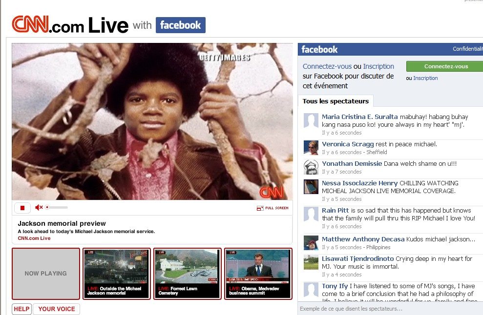 CNN diffuse sur son espace Facebook l’intégralité de la cérémonie, ainsi que divers reportages vidéo sur la star. Les membres du réseau social peuvent partager les flux avec leurs amis et les commenter en direct. Les vedettes de la chaîne tels Larry King ou Don Lemon commenteront l’événement.