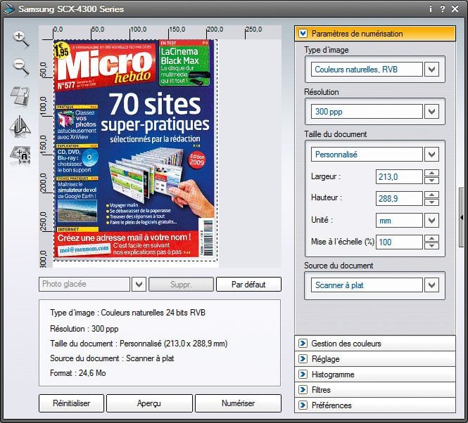 Mention spéciale au fabricant Samsung, qui a doté les deux modèles de ce comparatif (dont la SCX-4500W) d’un excellent utilitaire de gestion des numérisations. L’interface est claire, très ergonomique, au point qu’il est difficile de rater ses scans.