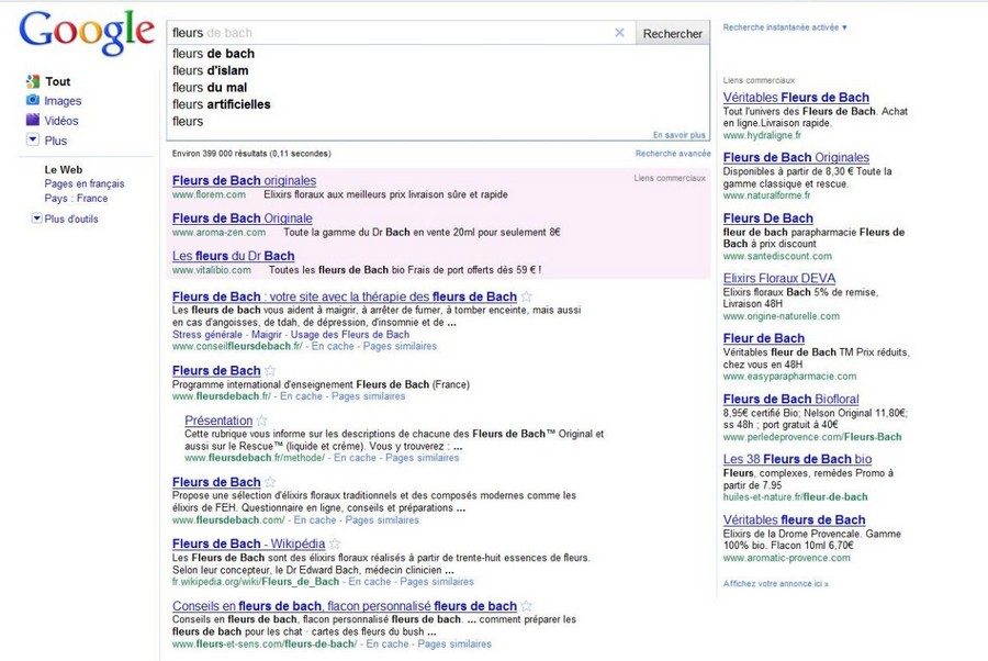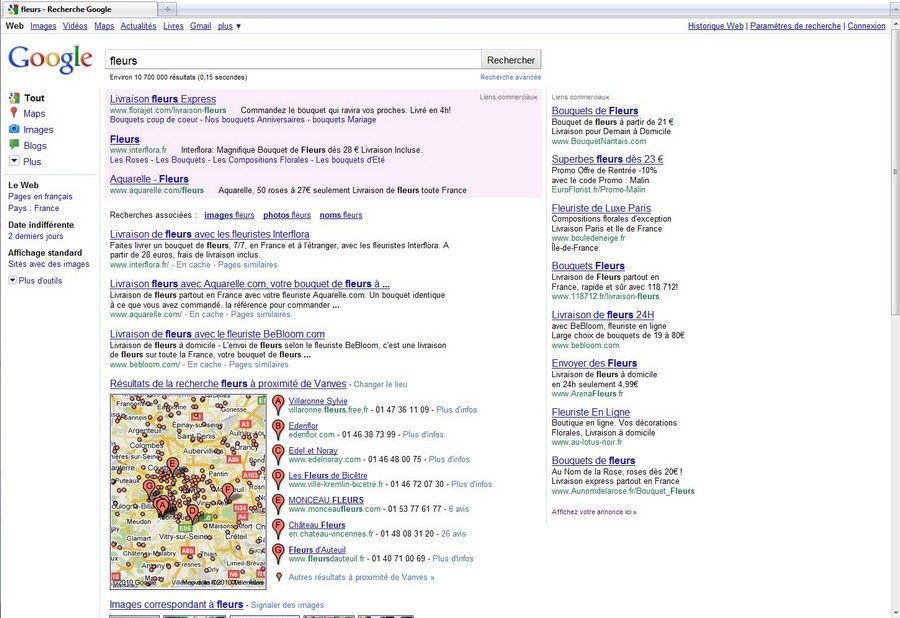 Tapez « portable ordinateur ». Entre le début et la fin de l’inscription, pas moins de trente-deux liens sponsorisés, de la vente de portails, à celle de téléphones se seront affichés. Avec la même recherche effectuée à partir de la version classique du moteur de recherche, seuls huit Adwords seront présents à l’écran.