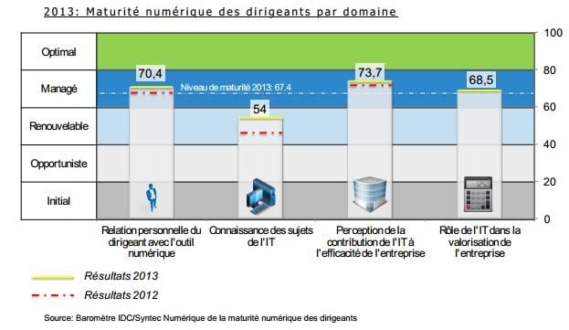 Sur les bases d’un modèle développé par IDC, leur niveau de maturité numérique a été évalué à 67,4 points sur 100 (meilleure score), en progression de quatre points comparé à 2012.