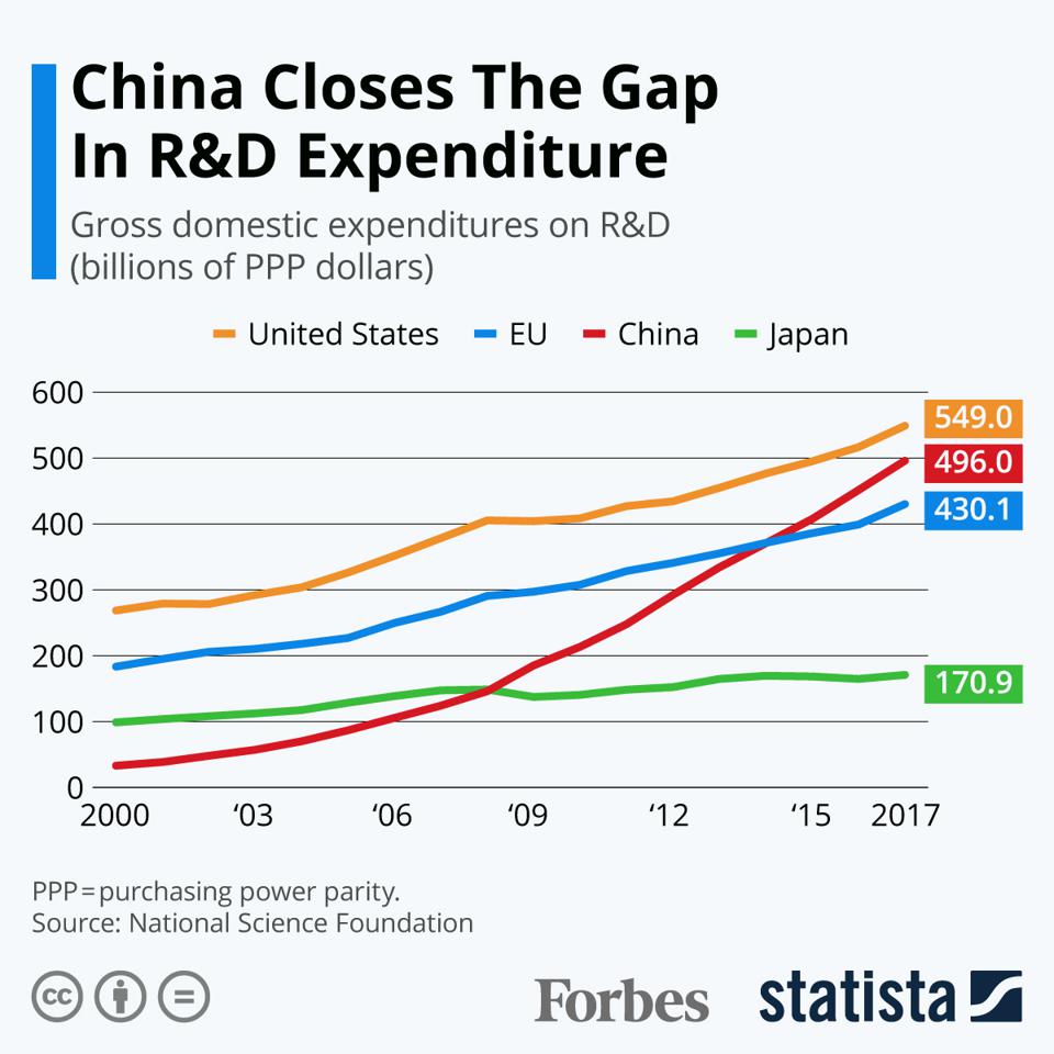 La montée en puissance de l’économie chinoise ces trente dernières années a en effet vu le pays passer du statut de « l’atelier du monde » à celui de « champion technologique ». La raison étant notamment liée aux budgets chinois de R&D qui égalent désormais ceux des États-Unis. Ces derniers comptent donc sur l’addition des budgets de pays amis et la constitution d’une opposition active à la conquête chinoise.