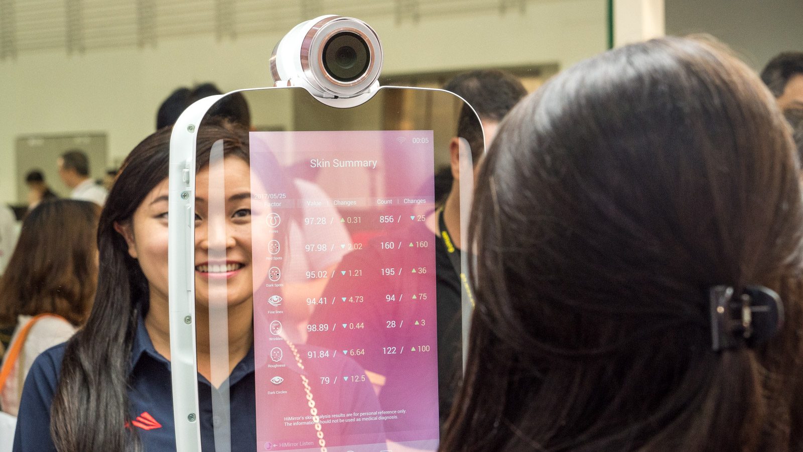 Voici un produit qui arrive très prochainement sur le territoire français : le Hi Mirror. Plus qu’un simple miroir, cet objet connecté est un « compagnon » de beauté : il analyse la qualité de votre peau via une caméra et vous donne des conseils santé (dormir, boire) et est capable de vous recommander l’utilisation de tel ou tel produit cosmétique. Pour ceux qui en restent aux concombres et à l’eau gazeuse, le Hi Mirror intègre aussi une radio et affiche la météo du jour.
