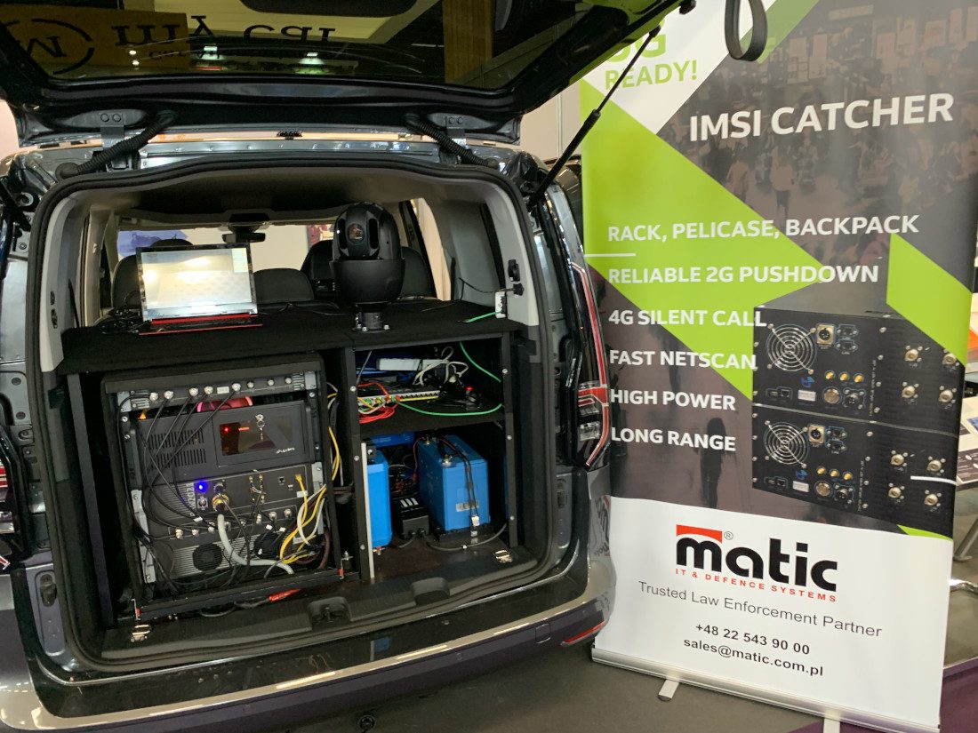 La surveillance électromagnétique fait également partie des grands classiques du salon, comme ce fourgon IMSI-catcher développé par la société polonaise Matic. L’avantage par rapport à la valise ou au sac à dos, c’est que les opérateurs sont bien planqués et à l’abri de tout rayonnement. Le détail qui tue : les antennes sont camouflées dans les barres de toit du véhicule.