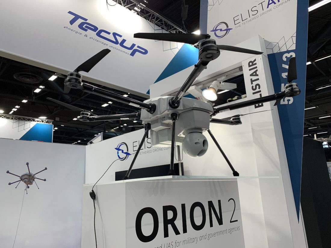 Plus étonnant, le drone Orion 2 de la société française Elistair est tenu en laisse comme un chien à l’aide d’un câble de 70 ou 100 mètres de longueur. Ce dernier permet d’assurer les transferts de données et l’alimentation électrique de l’engin. L’avantage, c’est que celui-ci peut rester en l’air jusqu’à 24 heures d’affilée. Pratique pour surveiller les grands évènements sportifs ou culturels.