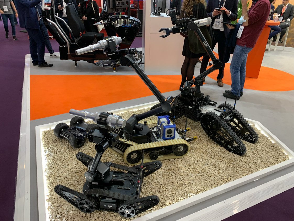 Mais le robot à quatre pattes reste encore une exception à Milipol. Les autres robots terrestres sont dotés de roues ou de chenilles, ce qui ne les empêche pas de gravir des escaliers et de se déplacer sur un terrain modérément accidenté. Leurs missions sont plus ou moins les mêmes que leurs cousins quadrupèdes.