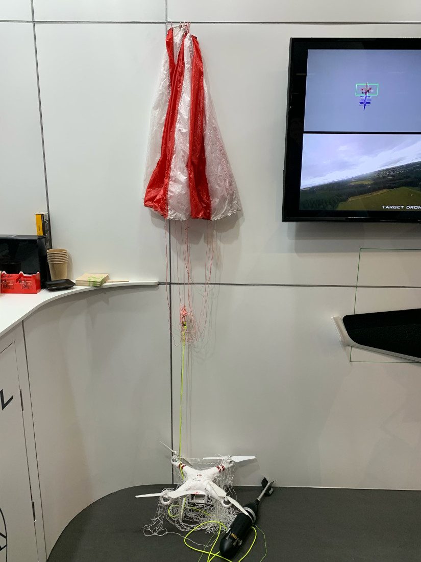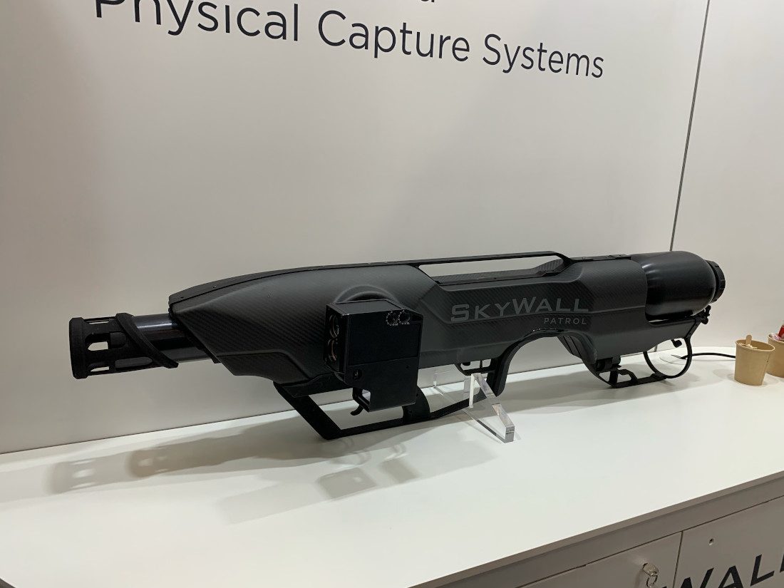Évidemment, les exposants de Milipol proposent aussi des systèmes anti-drone, comme cette espèce de bazooka baptisé Skywall Patrol. Il permet de tirer un projectile spécial qui, juste avant de percuter l’aéronef, libère un filet et un parachute pour venir le capturer en toute sécurité. La portée est de plus d’une centaine de mètres.
