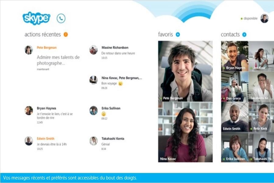 Evidemment, impossible de passer à côté de celui qui s’impose d’emblée comme le principal outil de communication du nouvel univers. Skype a été repensé pour Windows 8 et devient le communicateur préféré de Microsoft puisqu’il a été officiellement intronisé « successeur de MSN/Live Messenger », l’éditeur ayant choisi de fusionner les deux produits. L’app se montre très visuelle, plutôt pratique une fois placée en mode Snap, et gère donc à la fois vos contacts Skype et MSN/Live Messenger.