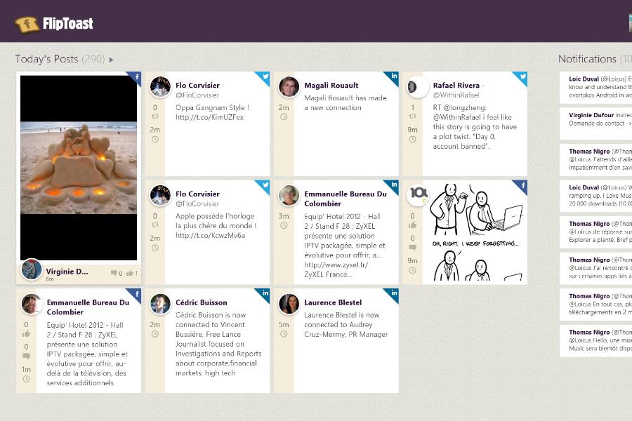 Voilà une app qui regroupe tous vos réseaux sociaux en un seul portail interactif : Facebook, Twitter, LinkedIn, Instagram et bientôt d’autres réseaux se retrouvent ainsi fusionnés au sein d’une même app. Sa fonction « Today’s Post » vous permet de consulter toutes les publications de tous vos murs/fils sur un même écran. Pratique pour faire un tour complet de vos amis en fin de journée quand vous avez été trop occupé pour suivre vos réseaux. Fliptoast étant intégré au talisman de partage, il permet aussi de facilement publier n’importe quoi, depuis n’importe quelle app via n’importe quel réseau social.