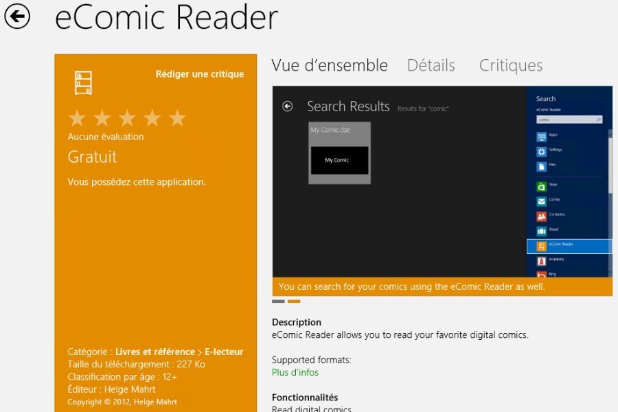 Le format large des tablettes Windows 8 convient parfaitement à la lecture de bandes dessinées. Pour les fans de Stan Lee, Marvel et autres comics américains en version originale (malheureusement le catalogue est exclusivement en anglais), voici une offre légale disposant de l’un des lecteurs les plus évolués et les mieux adaptés aux tablettes Windows 8. Espérons que le Store proposera rapidement une offre légale en français équivalente. Pas de version Windows RT pour l’instant.