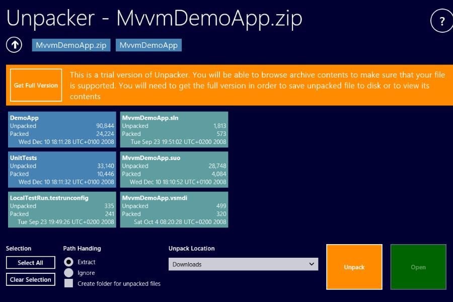 Si vous ne voulez pas charger votre tablette inutilement ou si vous utilisez une Surface RT, voici une solution simple pour décompresser tous les types d’archives (Zip, RAR, Arc, 7z, etc.) sans alourdir la configuration ni retourner au bureau. Unpacker fait le job simplement et efficacement. On ne pourra lui reprocher qu’un prix un peu élevé pour un outil qui ne fait que de la décompression ! D’autant que la prochaine version de 8Zip, un autre logiciel de compression/décompression du Windows Store, devrait lui aussi supporter plusieurs formats également dans sa prochaine version.