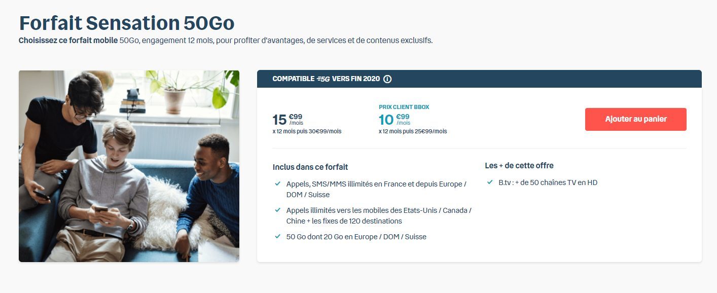 Le forfait Bouygues Telecom 50 Go à 15,99 euros par mois