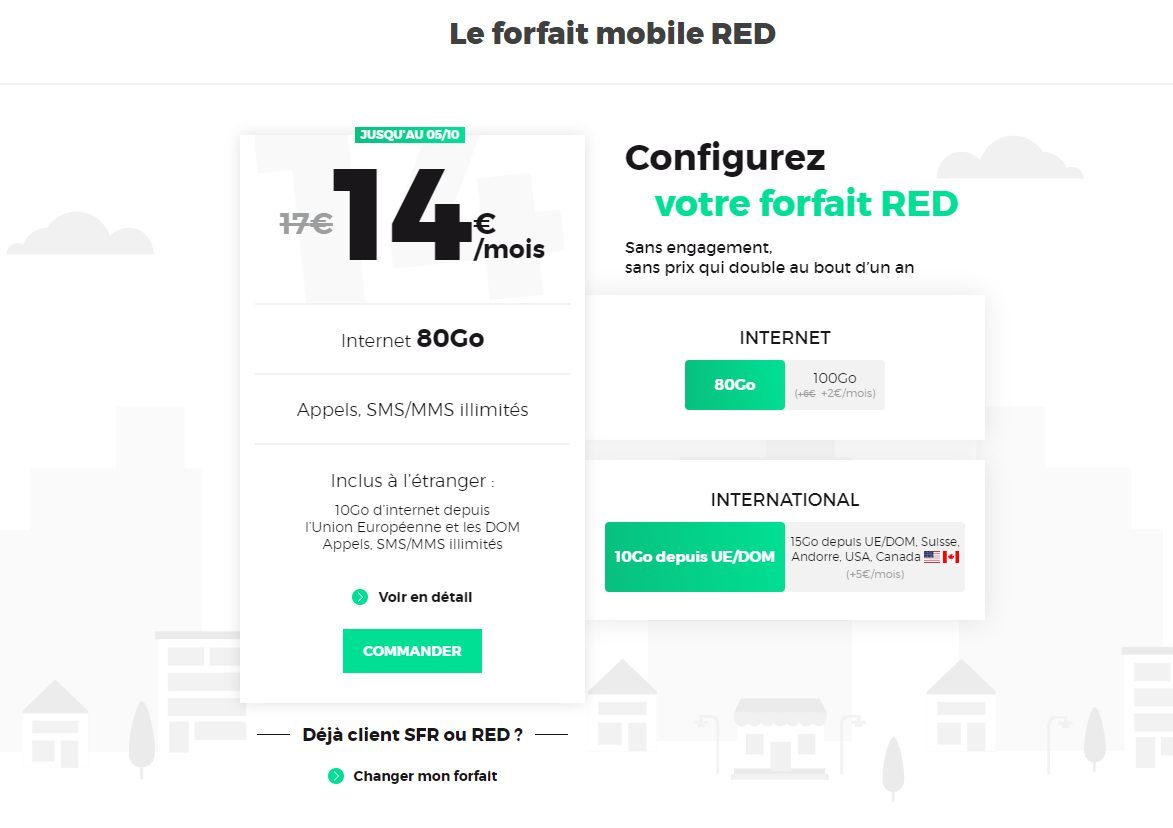Le forfait RED by SFR 80 Go à 14 euros par mois