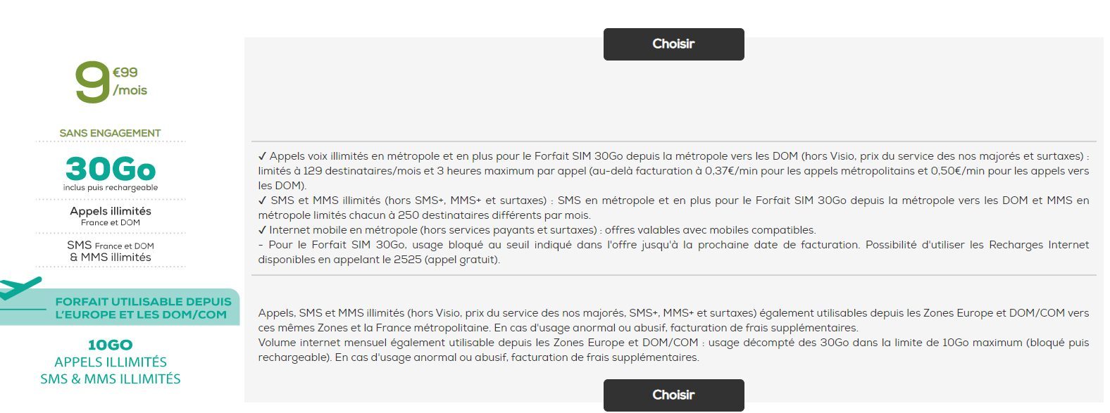- Appels, SMS / MMS illimités, De 10 Go d’internet en Europe