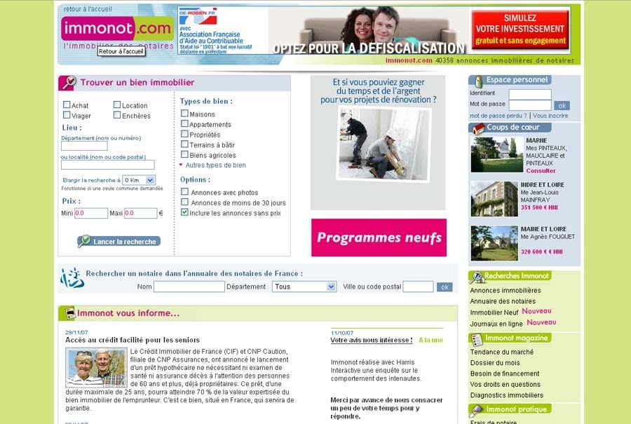 Emanation d’un groupe de presse notariale, Immonot est l’un des grands sites immobiliers nationaux spécialisé dans l’ancien. Depuis la fin du mois de septembre, il propose également des logements neufs, plus