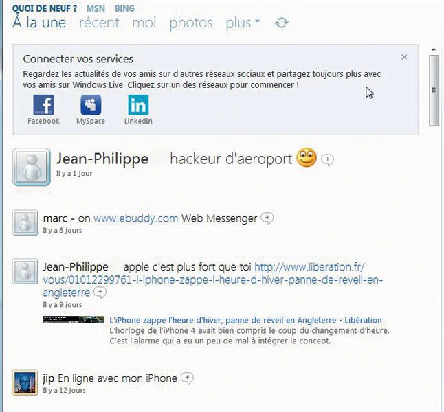 Avec Windows Live Messenger, suivez l’actualité des réseaux sociaux dans une interface unique.