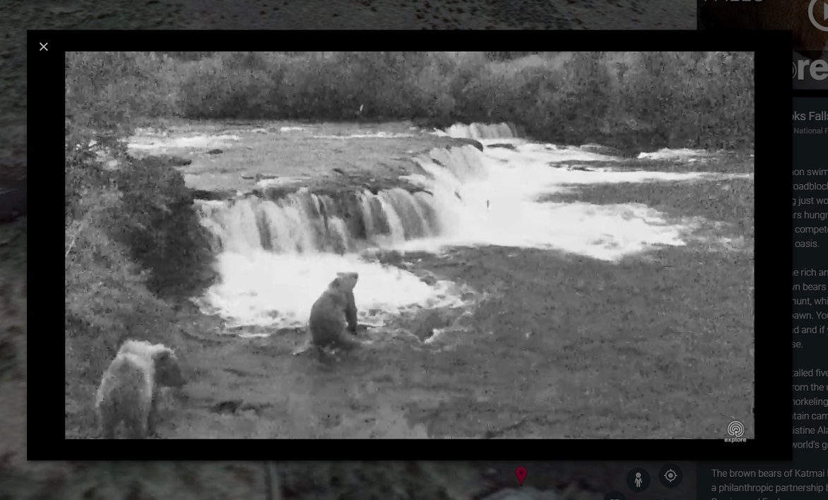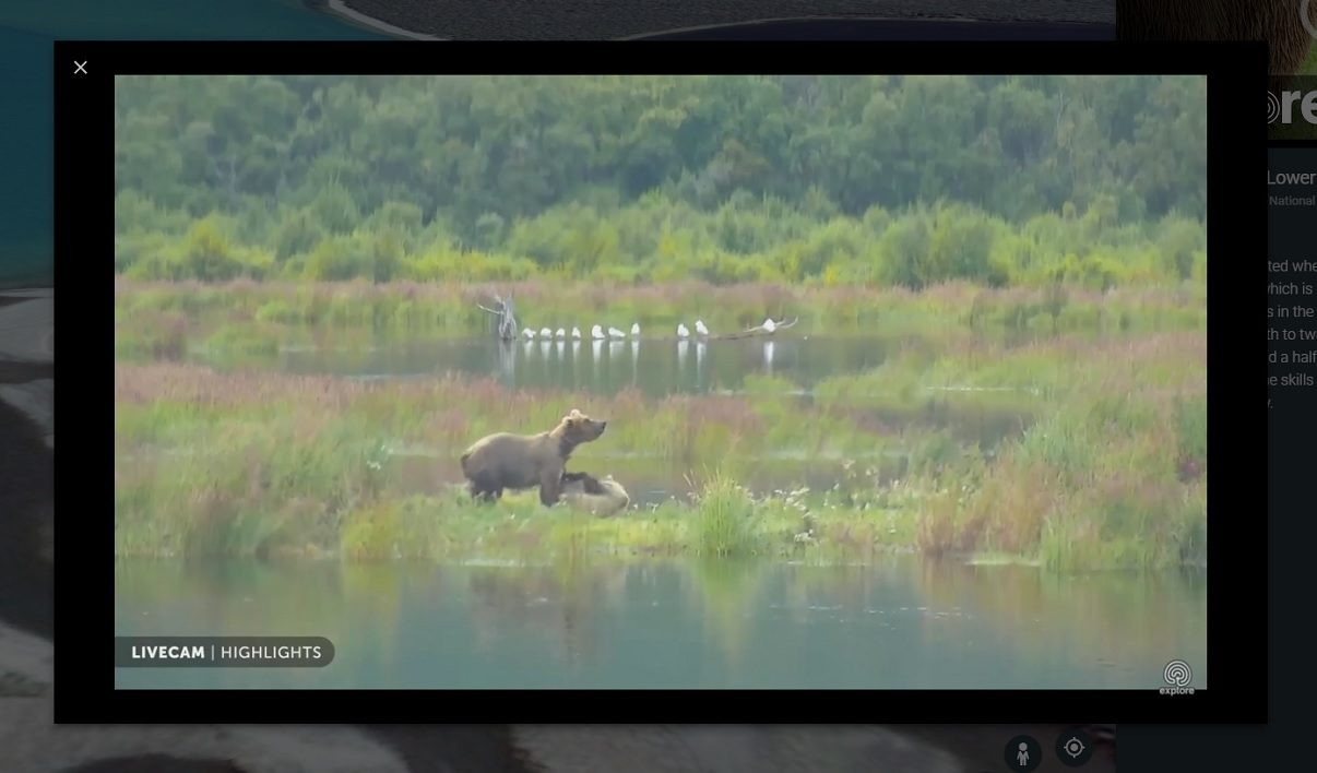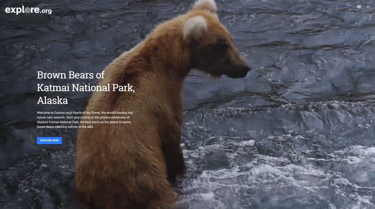 Les premières disponibles se situent dans le parc national Katmai en Alaska, où des ours bruns peuvent être visible en train d’attraper des saumons dans la rivière Brooks. Les équipes du site Explore.org ont ainsi placé cinq caméras dans le parc, dont une sous-marine.