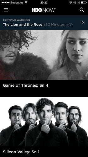En bidouillant un peu, les internautes français peuvent également profiter de ce magnifique catalogue, à condition d’avoir un compte Apple US et un VPN. Voici à quoi ressemble l’application HBO Now sur un iPhone.