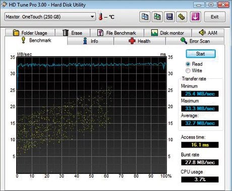 On aime… le design et la finitionCe disque allie à merveille matière plastique et aluminium brossé dans une coque à la finition irréprochable. Simple et de bon goût. Le choix des matériaux permet au Maxtor OneTouch 4 Mini de ne pas faire monter trop l’aiguille