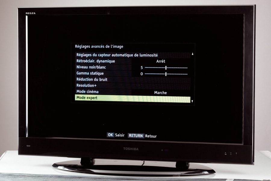 Toshiba a visiblement compris que, pour permettre au plus grand nombre d’accéder à tous ces réglages, il fallait que l’interface soit claire, lisible et bien organisée. C’est effectivement le cas, avec une interface sobre sur fond noir, des appellations compréhensibles pour chaque fonction et un curseur qui se place discrètement sous l’image pendant les réglages.