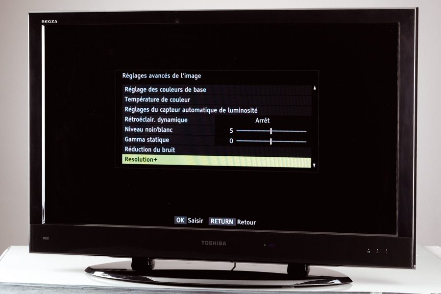 C’est l’un des arguments marketing de Toshiba et, pour une fois, il n’est pas fallacieux. Cette fonction d’upscaling (augmentation artificielle de la définition des images standards pour un affichage en HD) se révèle efficace, pour peu que l’utilisateur prenne le temps d’effectuer quelques essais et réglages. Le résultat n’est pas transcendant sur toutes les sources, mais en général, l’activation du mode Resolution+ procure un net gain en dynamique et en précision.