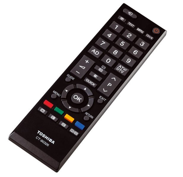 Qu’est-ce que c’est que cette télécommande ? Même s’il s’agit là d’un téléviseur LCD d’entrée de gamme, les designers Toshiba auraient pu faire un petit effort pour adoucir les courbes, enjoliver les touches et offrir une prise en main agréable. Celle-ci, en tout cas, semble tout droit sortie du carton d’un tube cathodique 36 cm des années 1980.