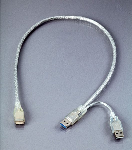 Les ports USB de certains PC ont parfois du mal à alimenter les disques durs externes 2,5 pouces en électricité. Ce Iomega eGo est donc équipé d’un câble en Y, pourvu de deux fiches USB à l’une de ses extrémités. La première sert à échanger les données avec l’ordinateur, la seconde à compléter l’alimentation.