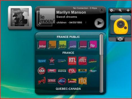 Si vous n’avez pas envie de lancer votre navigateur ou Windows Media Player chaque fois que vous voulez écouter une webradio, ce widget est fait pour vous. Il référence 52 radios francophones.