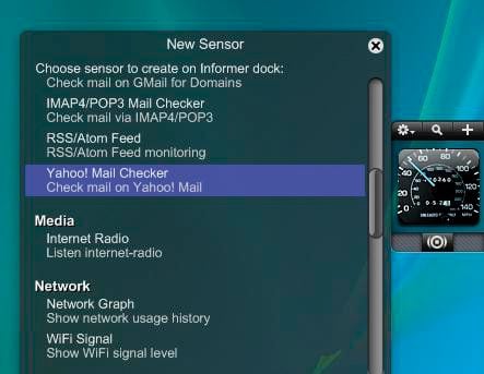 pouvez y créer des raccourcis vers des dossiers, des applications, ou même des sites Web. Il peut également vérifier vos comptes mails (Yahoo!, Gmail, ou tout compte POP), sans oublier les performances de votre système.