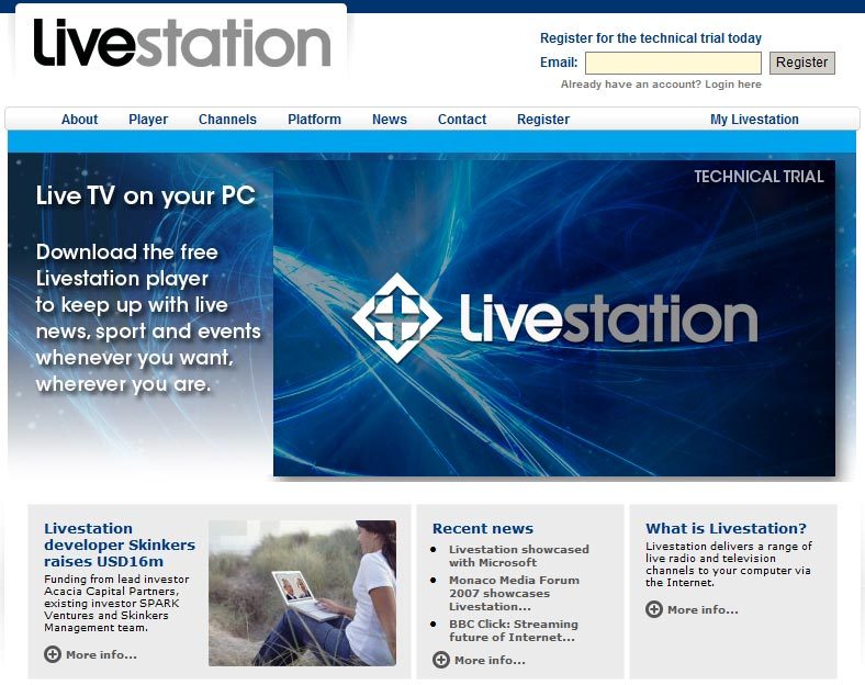 Souvent présenté à tort comme un projet Microsoft, Livestation est en réalité un produit développé par la société britannique Skinkers en collaboration avec Microsoft Research UK (qui fournit la technologie P2P sous-jacente).