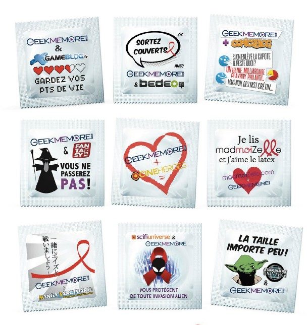 Ainsi, durant toute la journée du 1er décembre 2012, à l’initiative du site de rencontres, ses partenaires Bedeo.fr, Cineheroes.net, Comicsblog.fr, Fantasy.fr, Gameblog.fr, Madmoizelle.com, Manga-sanctuary.com, Scifi-Universe.com et Starwars-Universe.com organiseront des jeux-concours afin de faire gagner un an de préservatifs customisés. Mais ça fait combien d’exemplaires, un an de préservatifs ? « Les gagnants de ces jeux sont forcément très épanouis… Donc nous avons décidé de leur en offrir 365 », répond avec malice le créateur du site de rencontres, Sébastien Moricard.