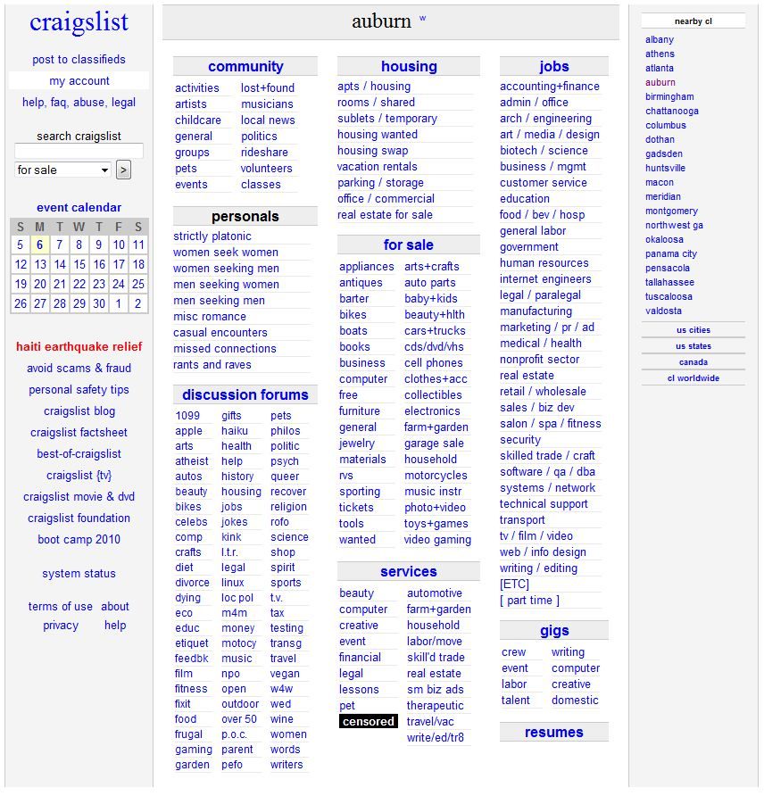 Le site de petites annonces a fermé, le 3 septembre, la section « adulte » de ses versions accessibles depuis les Etats-Unis. La catégorie a été remplacée par un rectangle noir sur lequel est inscrit le mot censored (« censuré »). Craigslist n’a donné aucune explication à ce changement de politique, mais les menaces de poursuites judiciaires émanant de plusieurs Etats américains n’y sont sûrement pas étrangères.